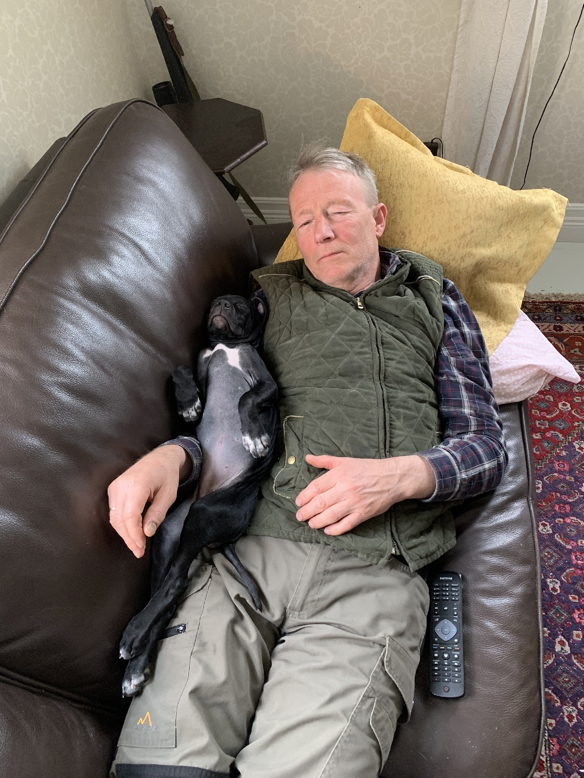 Bugatti 'den svarte' skall få stanna kvar hemma.. hab har blivit väl mottagen av de andra redan även av gamle Turbo. Det hör inte till vanligheten så länge de är så här små som nu snart 10 veckor.